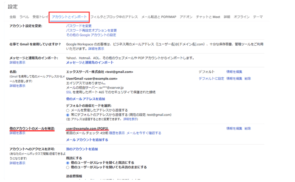の欄にメールアドレスが表示されていれば、あなたのGmailはPOP3を利用中です。